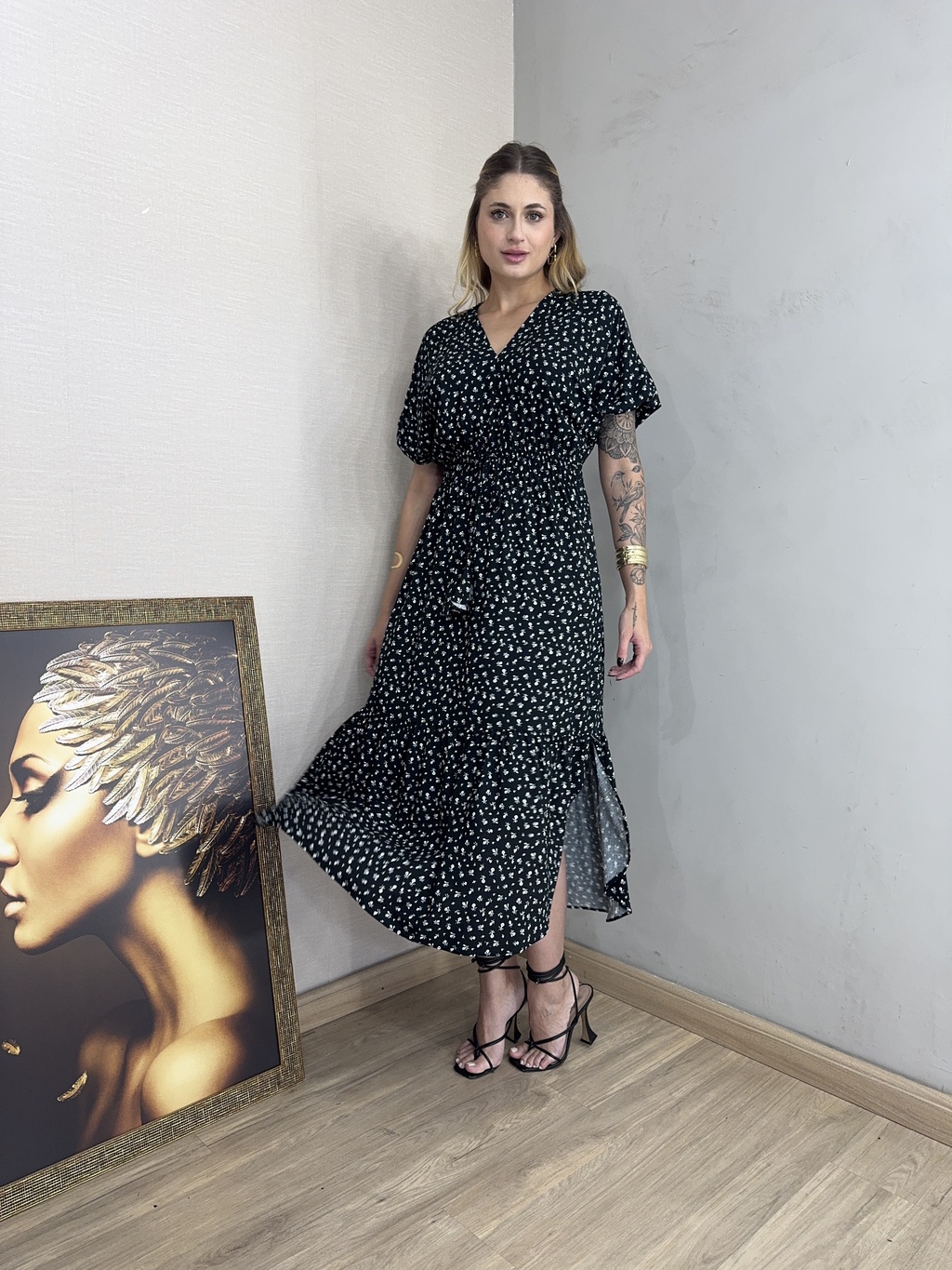 Conheça o Vestido Jady, o floral preto mais estiloso que você vai querer colocar para rodar por aí! Com um toque de elastano na cintura, tamanho único, mas veste até um 42, ele abraça suas curvas do jeitinho certo, garantindo conforto e aquele visual arrasador.